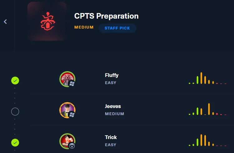 Furthermore there is a new (at the time of this writing) CPTS prep track available. While this did not exist prior to my exam, I can attest that I have rooted most of the boxes on the track and that they are indeed solid.
