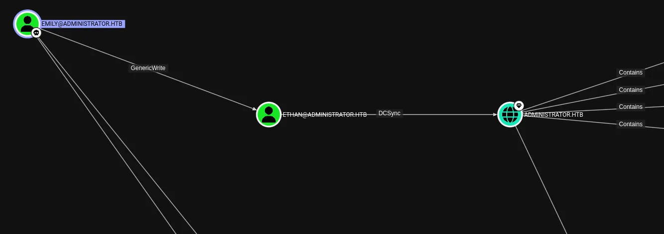 I didn’t hold any interesting privs but I still checked my GPO’s in bloodhound where I found that I had GenericWrite privs over Ethan: