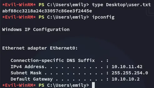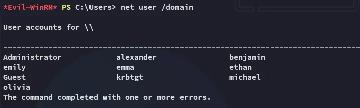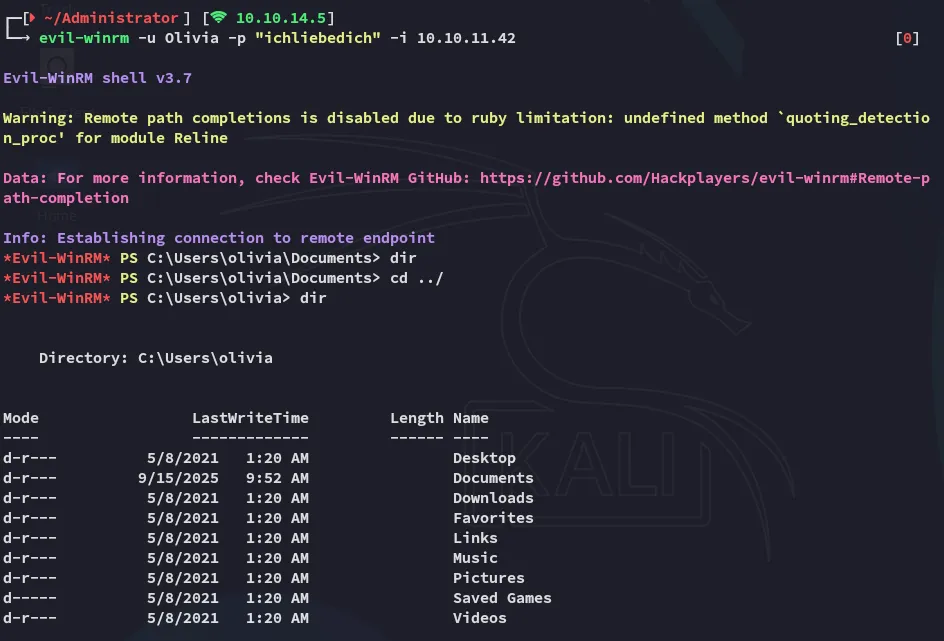 I did some other enum as well before ultimately logging in via evil-winrm using the provided creds for Olivia: