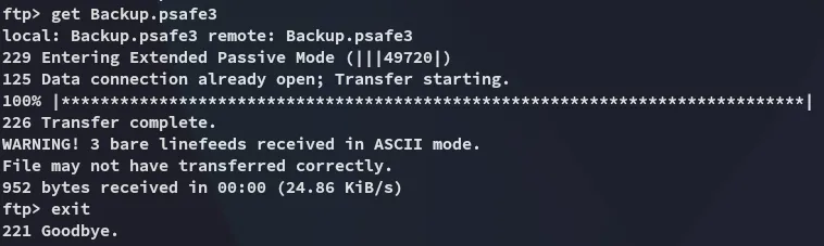 Here I found an interesting Backup.psafe3 file which I downloaded to my Kali: