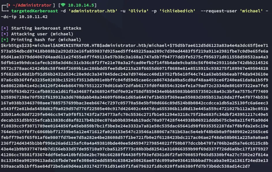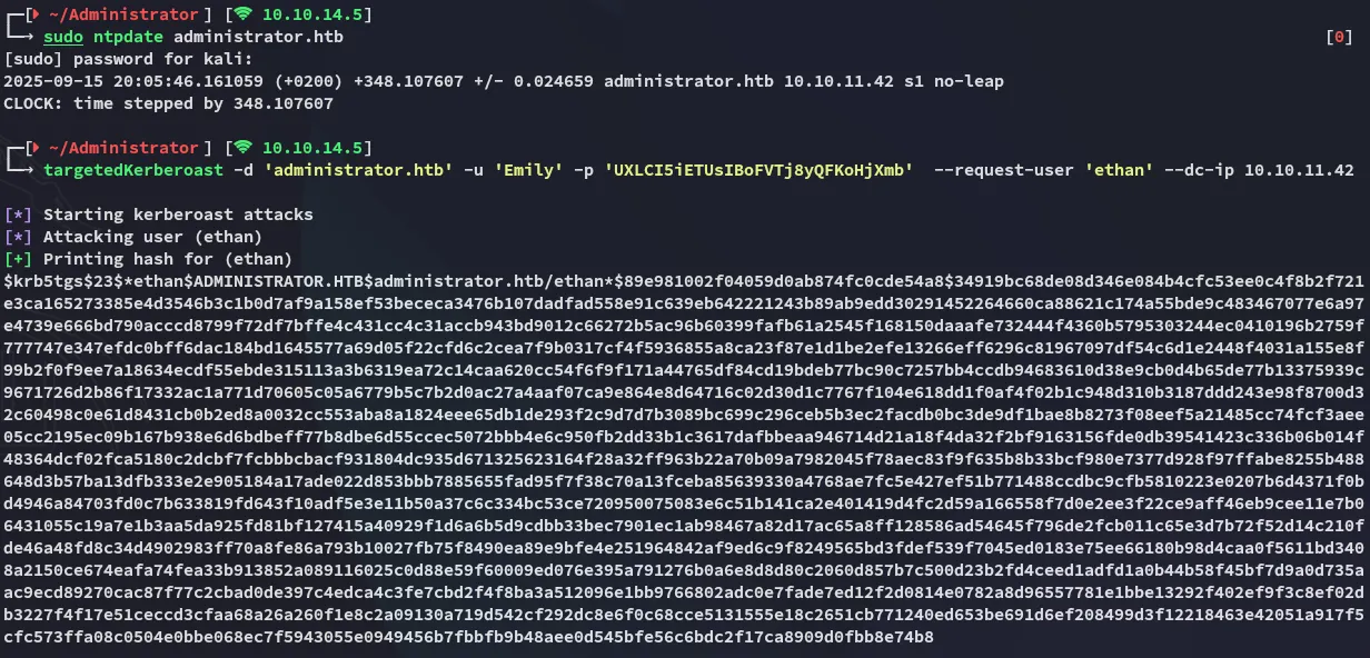I can use a targeted kerberoast to get the krb5tgs hash for Ethan.