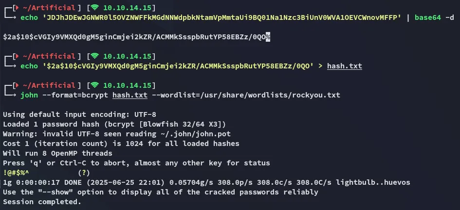 It appears to be a base64 encrypted bcrypt hash, let’s crack it.