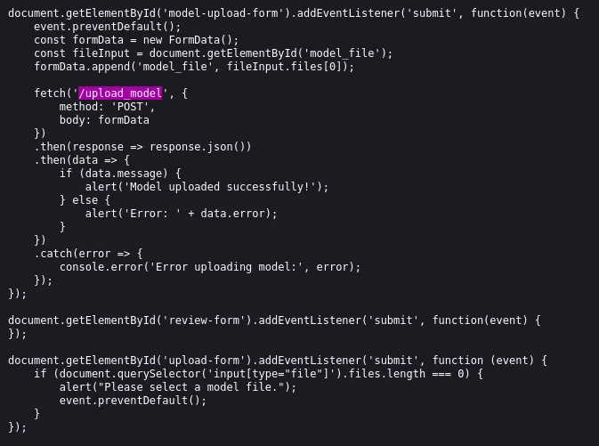 So instead what we’ll want to do is create a valid .h5 file with our reverse shell in it, upon file upload and running it on the client we should get RCE.