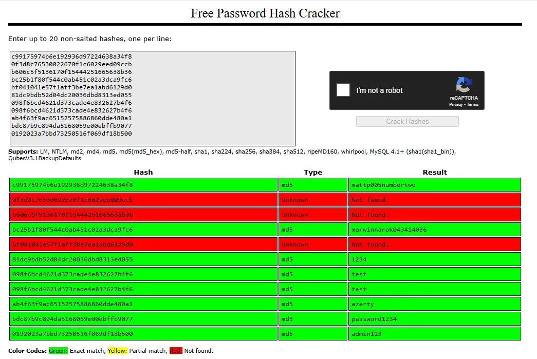 I then went on and used crackstation to crack the hashes: