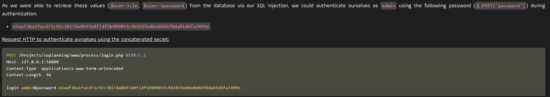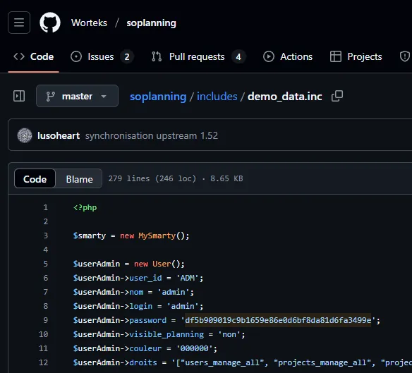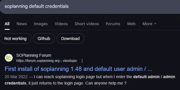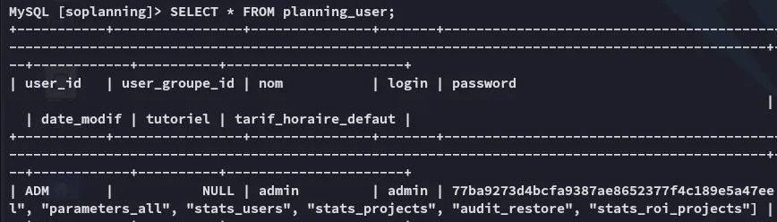 I wasn’t able to crack the hash but also noticed a cle part in the table, not knowing what it was I started checking online where I found this post containing info on how to get access to SoPlanning: