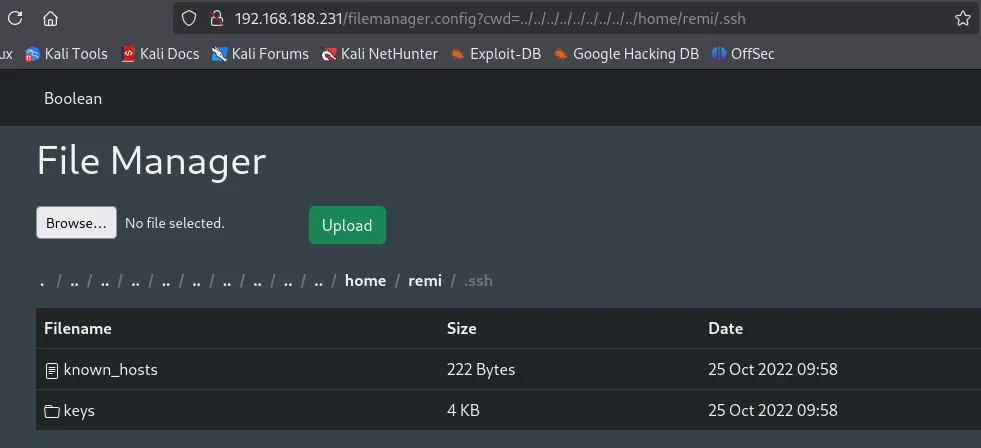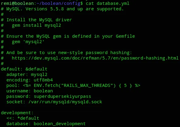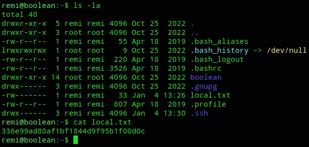 I noticed the boolean directory in remi’s /home directory. I went in and started snooping around, after some searching I found the following: