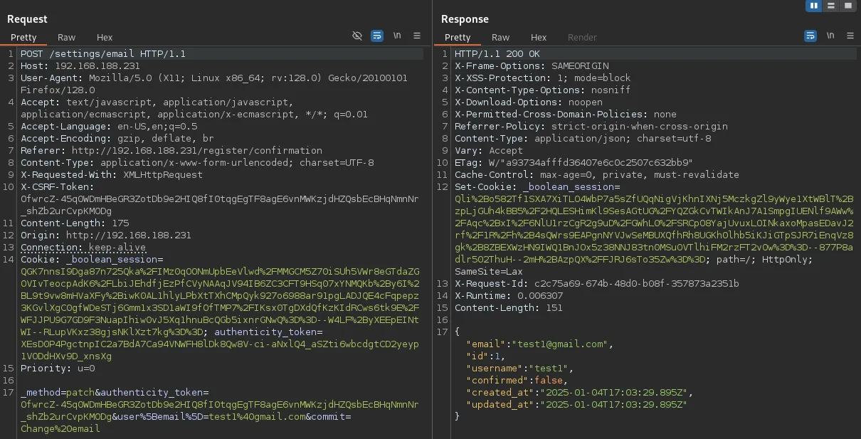 By modifying the request we were able to verify our email address and account, now let’s login.