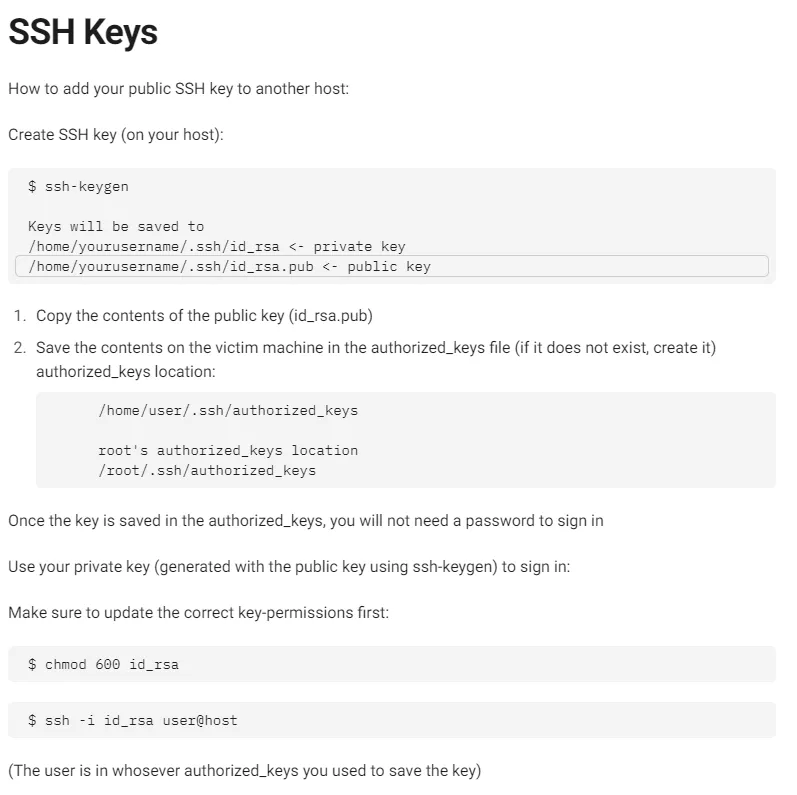 Let’s try to insert a ssh key in their .ssh directory in order to simplify logging in to their system.