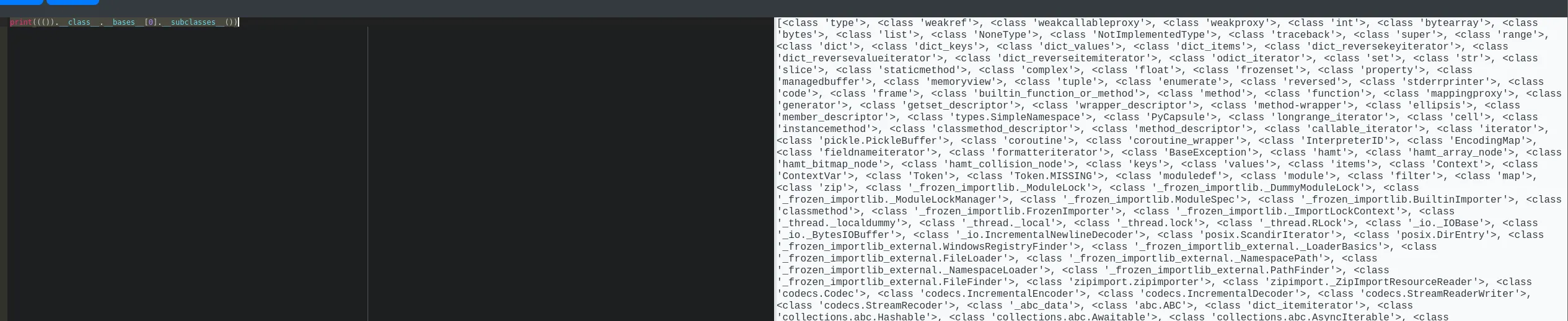 print((()).__class__.__bases__[0].__subclasses__())