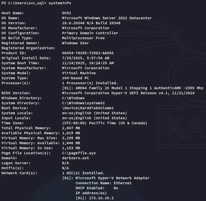 Running basic enumeration commands tells us that this host is a Windows Server 2022 machine: