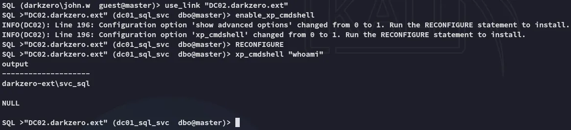 Using this link we can get access to DC02 and execute arbitrary commands:
