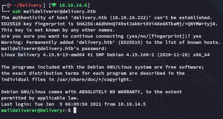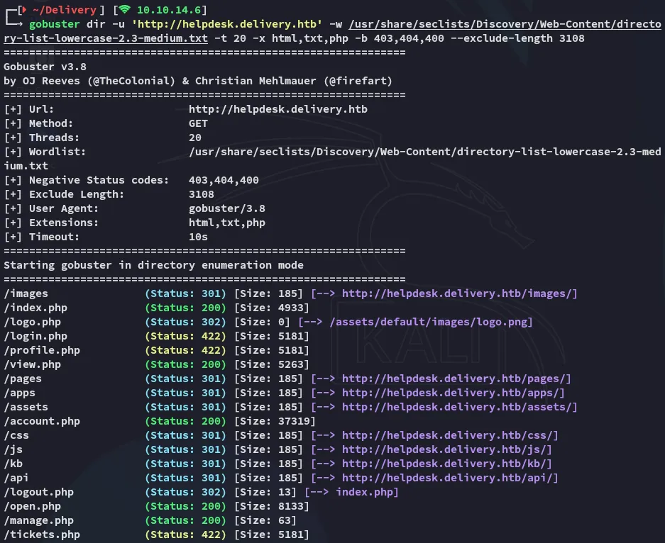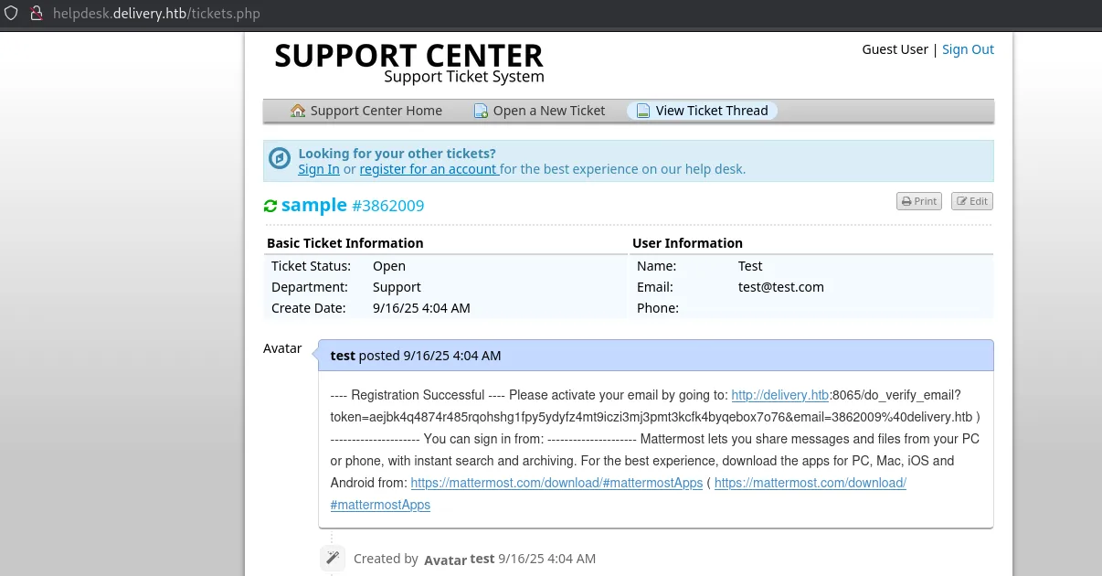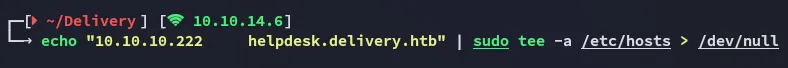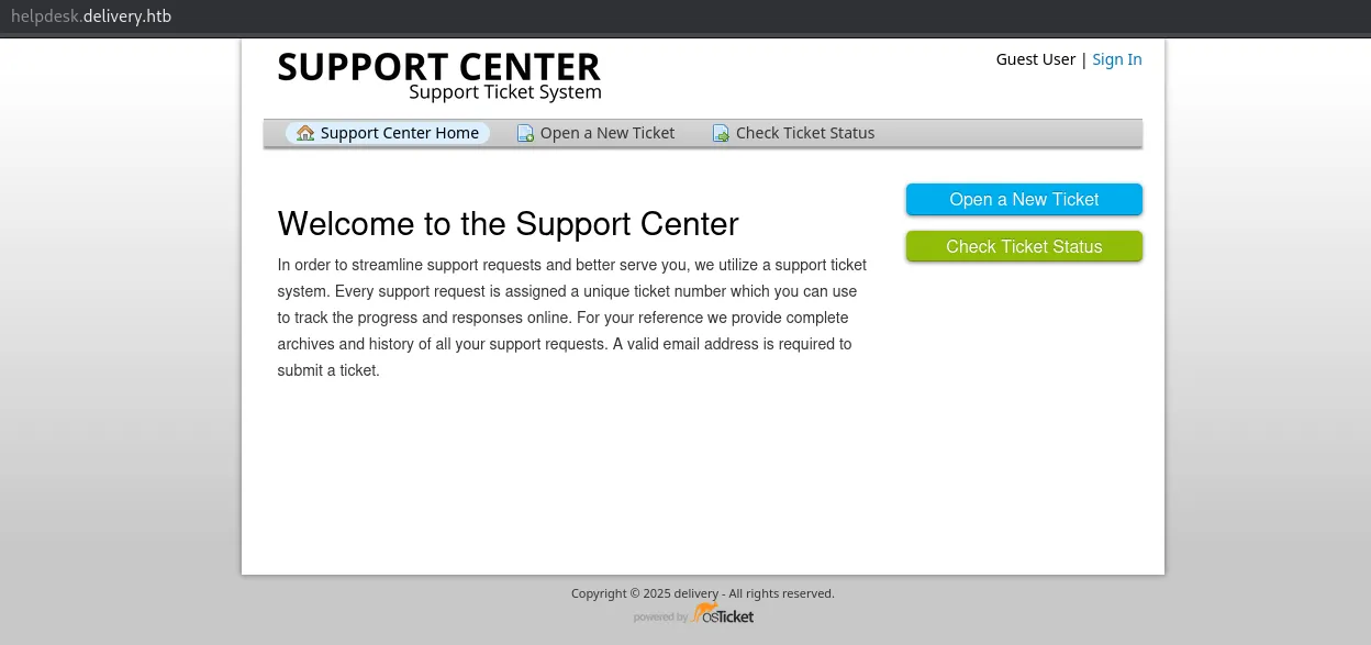 When clicking on it it takes us to helpdesk.delivery.htb, which means that I have to add a vhost to my /etc/hosts list.