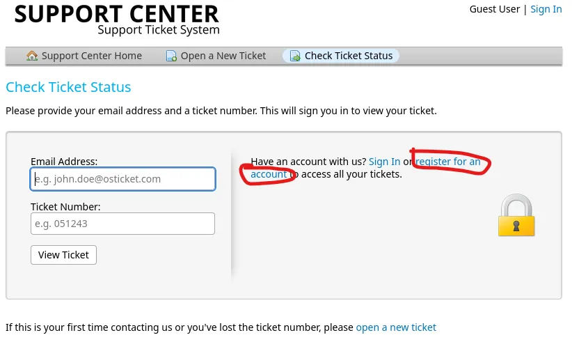 In Check Ticket Status there’s a mention of registering an account so I try it out.