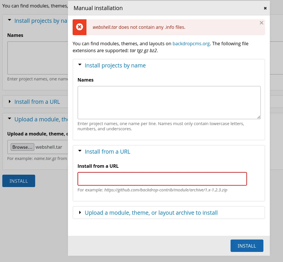 ; Added by Backdrop CMS packaging script on 2024-03-07project = backdropversion = 1.27.1timestamp = 1709862662And bundle it with the webshell:
