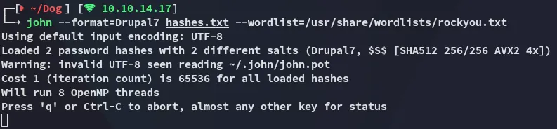 This went on for way too long so I tried out john but that didn’t give any result either: