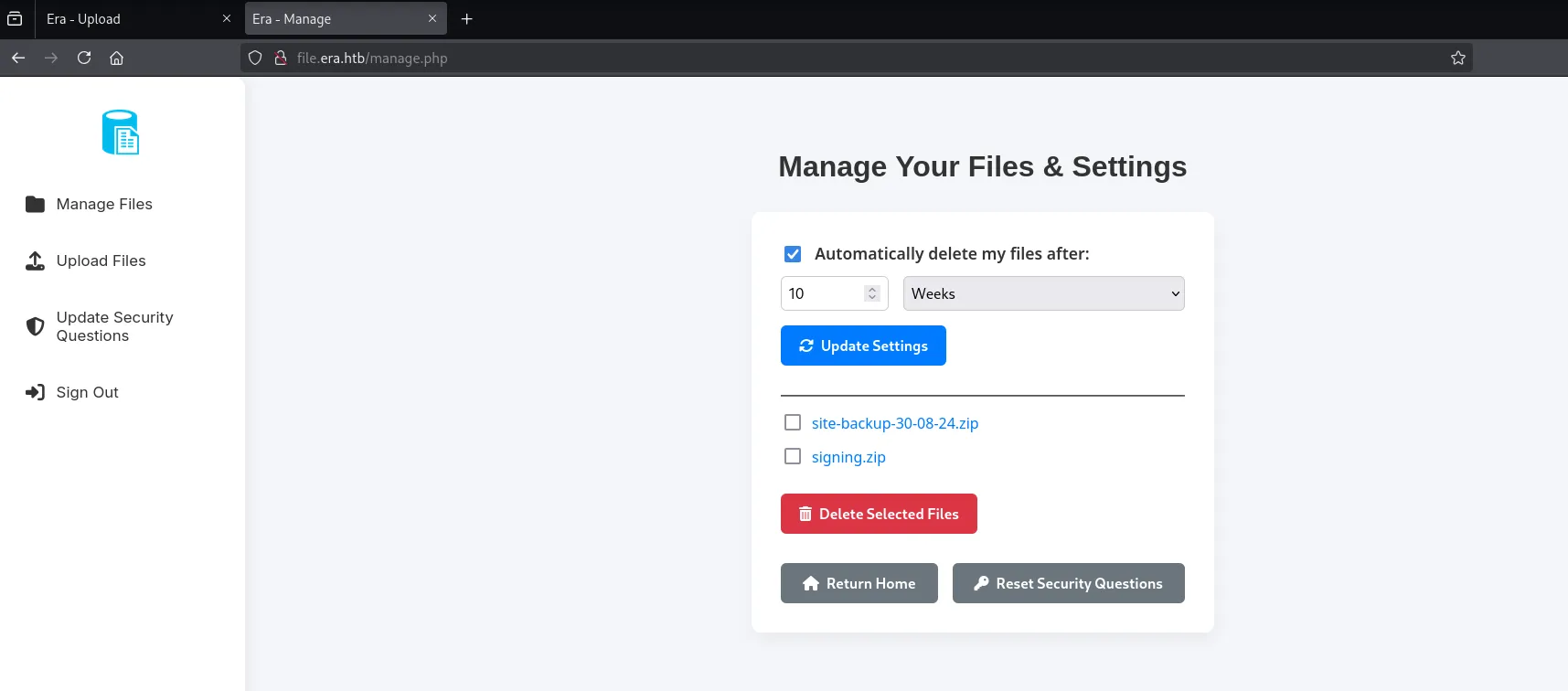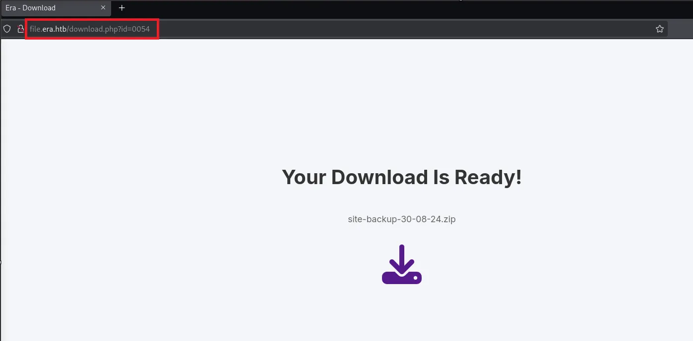 http://file.era.htb/download.php?id=This meant I could probably try to brute force other files and or directories.