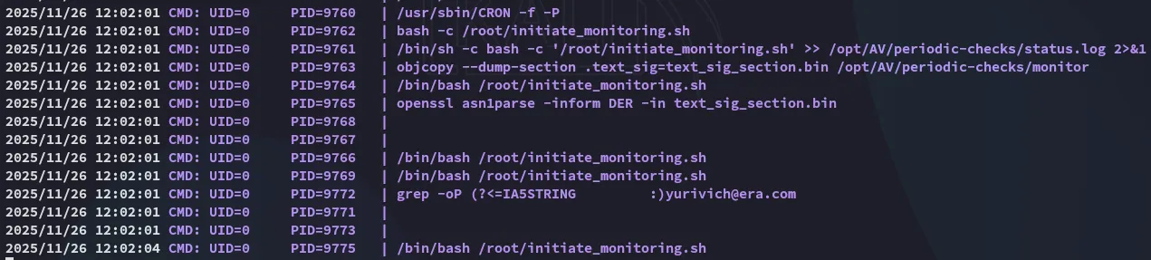 I suspected that this was some sort of cron job so checked it out using pspy64: