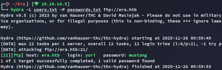 Nothing here could initially be done so I resprayed the passwords against ftp: