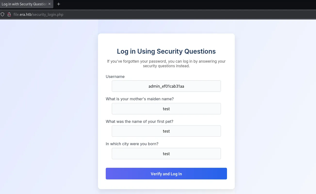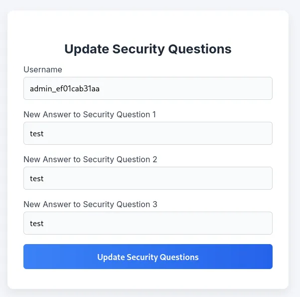 Next up we can change the security questions for the admin user so we can bypass normal security using the security questions instead via /security_login.php: