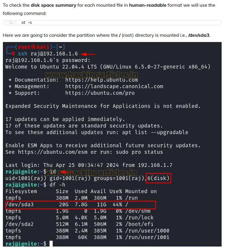 From my enum I had already found that dora is part of the disk group, let’s find out how we can exploit this.