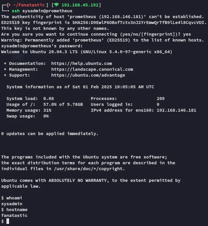 sysadminSuperSecureP@ssw0rdWe can now log into SSH.