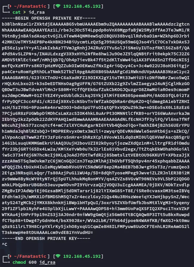 Now we copy the contents on our Kali, use chmod 600 and log into ssh as root.