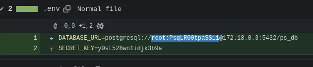 Inside the initial commit I found the credentials for postgresql: