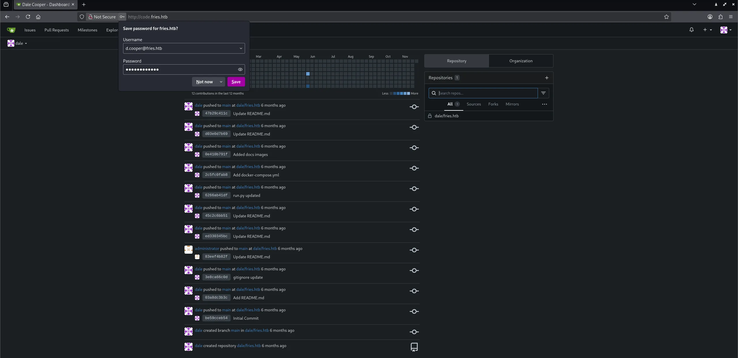 Here again I logged in with the creds for dale: