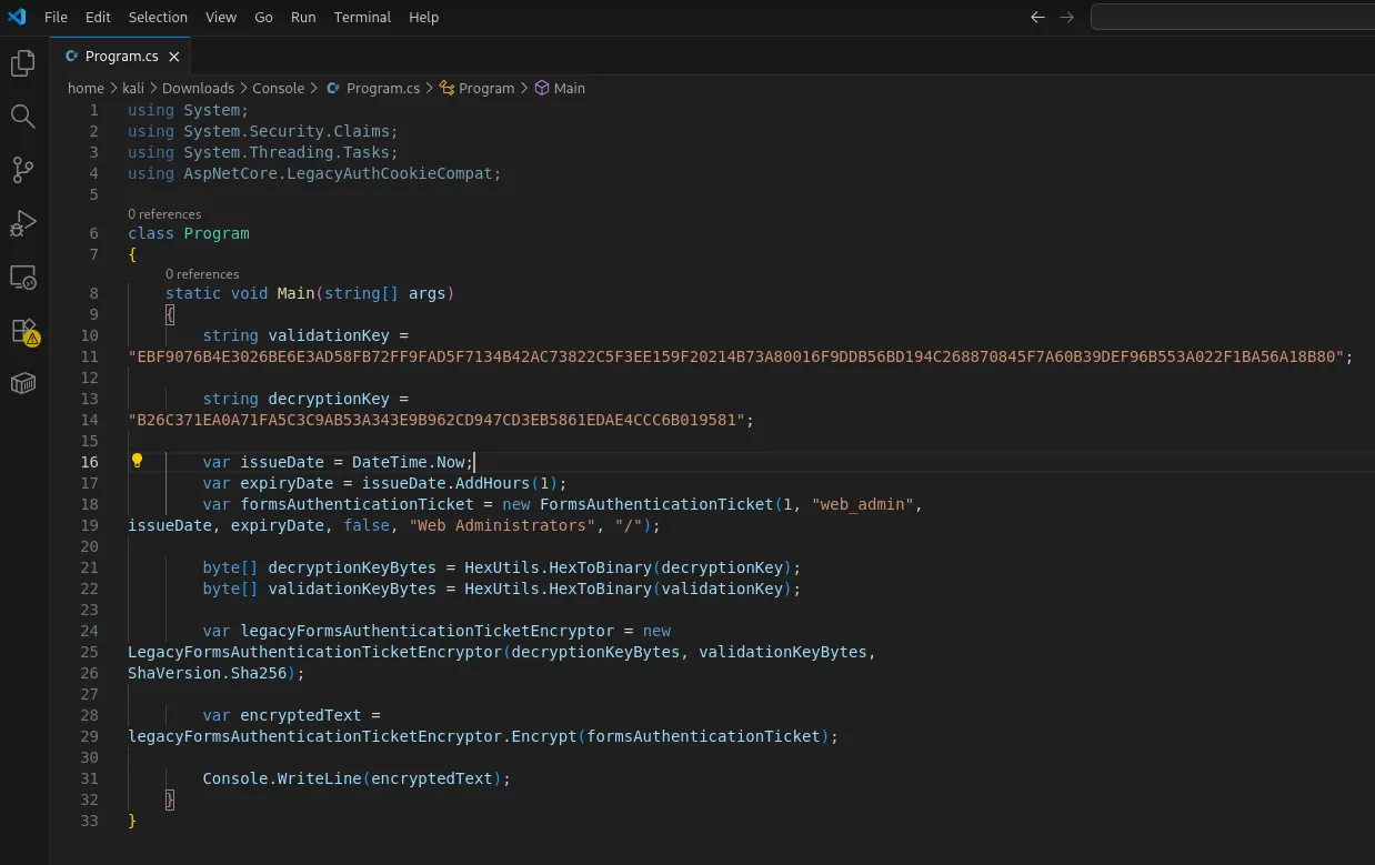 byte[] decryptionKeyBytes = HexUtils.HexToBinary(decryptionKey); byte[] validationKeyBytes = HexUtils.HexToBinary(validationKey);