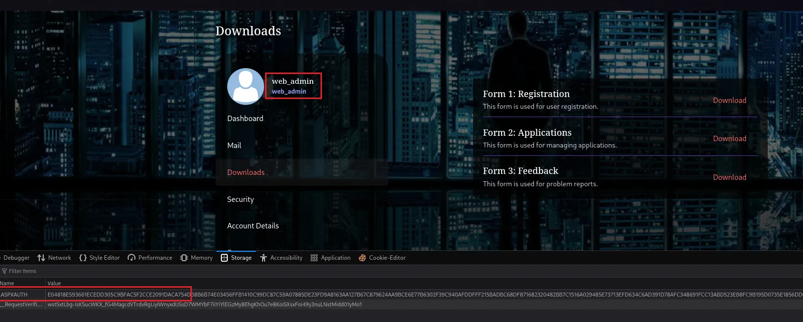 The program has compiled us a cookie which is valid for the web_admin user, we will now use this cookie to replace the current one on the website: