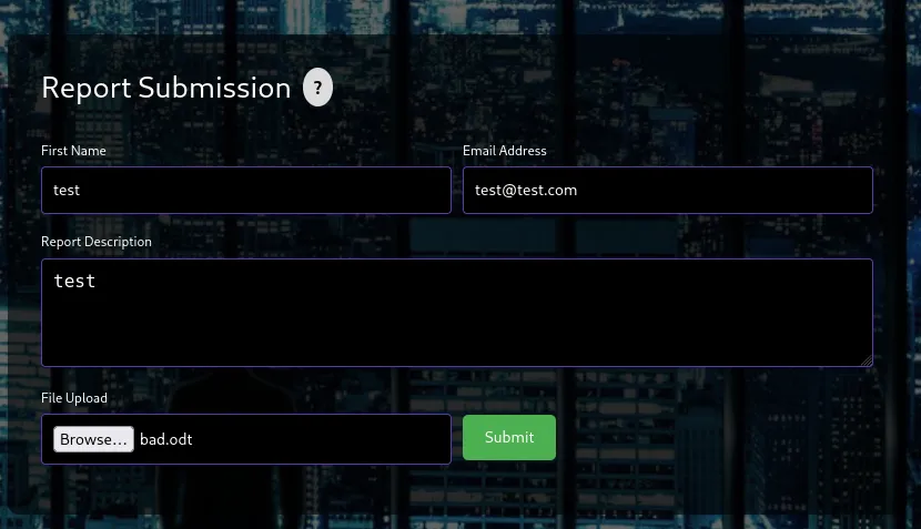 Using this script we’re able to create a malicious .odt file. When uploaded this will ping our listener, e.g. responder in my case which will leak the NTLM creds of the user’s account.