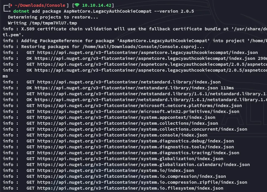 dotnet add package AspNetCore.LegacyAuthCookieCompat --version 2.0.5dotnet restore