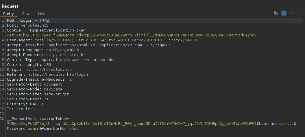 # ConfigurationBASE = "https://hercules.htb"LOGIN_PATH = "/Login"LOGIN_PAGE = "/login"TARGET_URL = BASE + LOGIN_PATHVERIFY_TLS = False