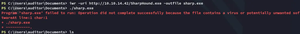 Since my bloodhound was sub-optimal I tried to collect data fresh from the target using sharphound, but the host flagged it as a virus: