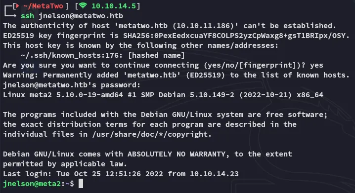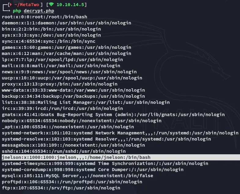 Through the XXE vulnerability we were able to retrieve the /etc/passwd file and find the jnelson user.