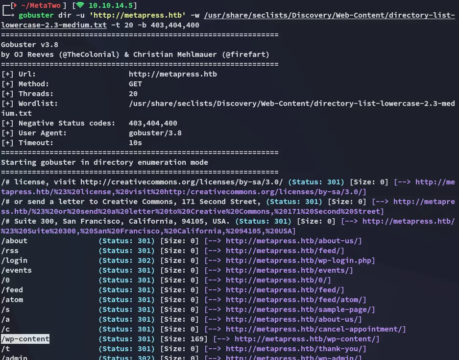 I used gobuster to enumerate the website and noticed that it was running WordPress: