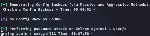 Running wpscan we notice that it’s in fact enabled meeaning we can try to throw a wordlist against it. But first we’ll check further down for the results.