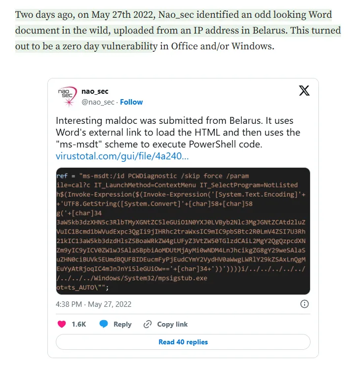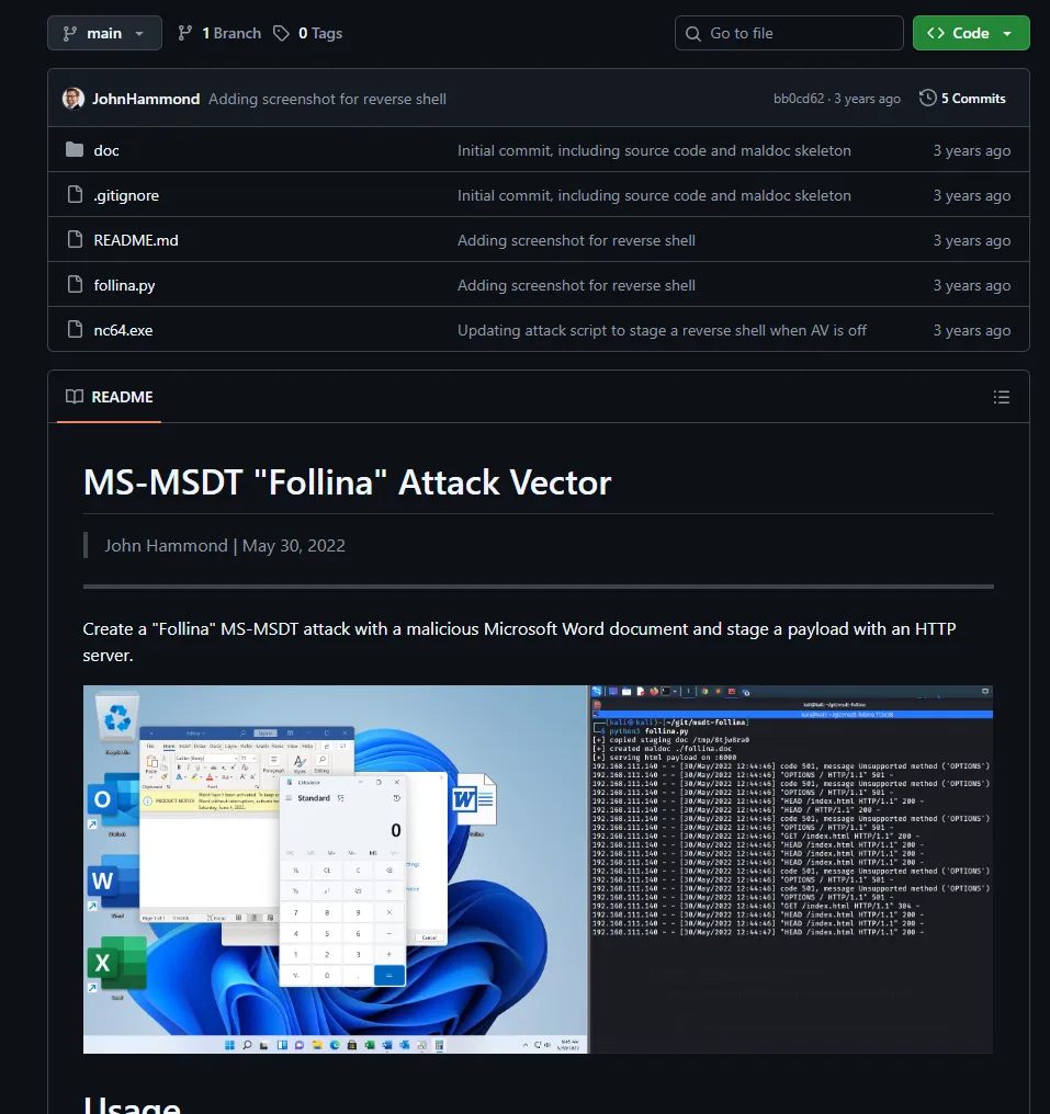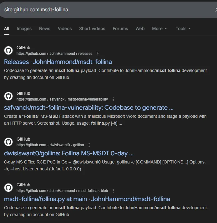 Since the follina.py script is quite extensive we can instead narrow it down just to the following: