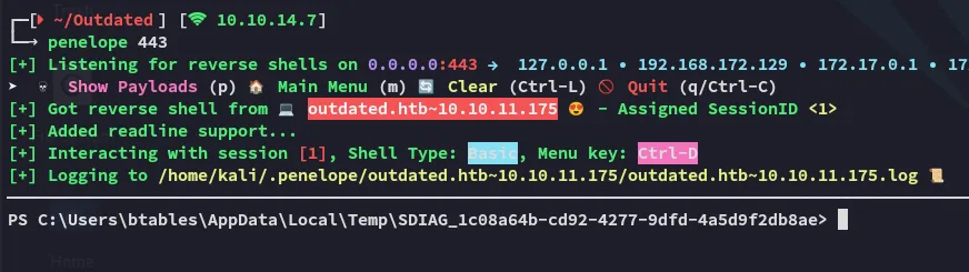 Afterwards I created another reverse shell to penelope in order to get a more stable shell using Powershell #3 (Base64) from RevShells.