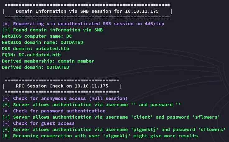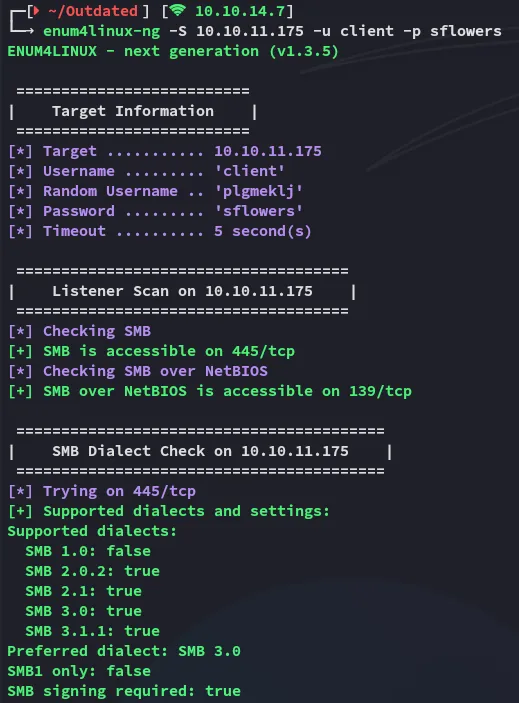 Since we have a valid set we can use it with enum4linux-ng to enumerate the DC: