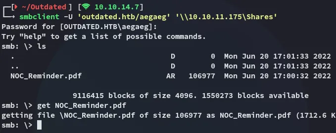 I also noticed the mail.outdated.htb subdomain present as mentioned by smtp.