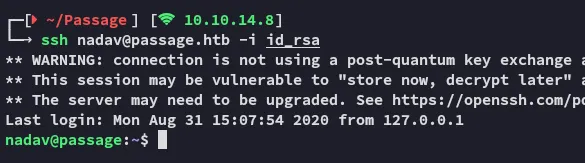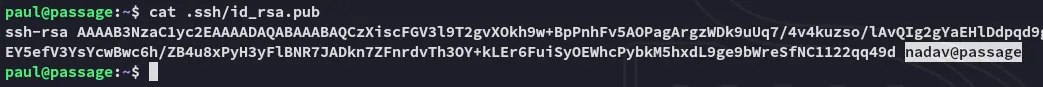 While checking further I didn’t see anything noteworthy on the surface except for the fact that the id_rsa.pub had nadav’s name in it: